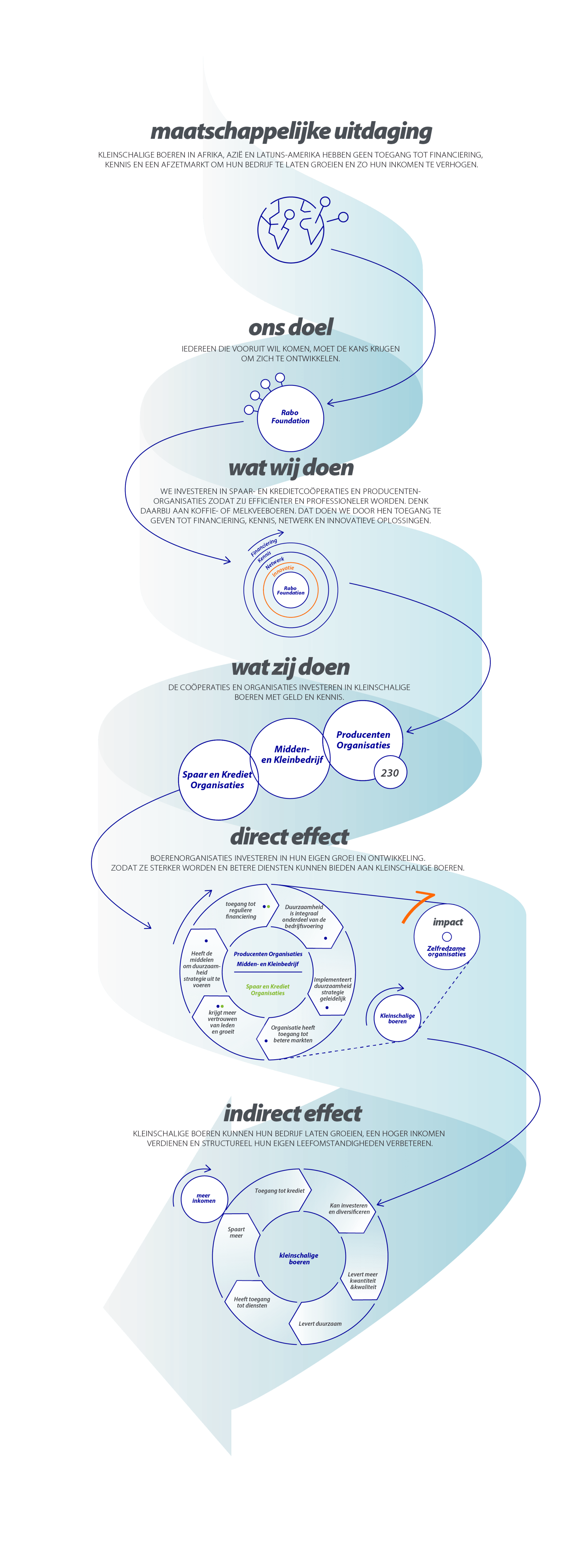 Om de impact te meten van haar inspanningen heeft de Rabo Foundation een eigen methodiek ontwikkeld. Turner ontwerpt de infographics en het digitale report.